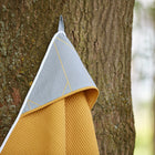 Kapuzenhandtuch goldene Linien auf Grau Waffel Piqué mustard
